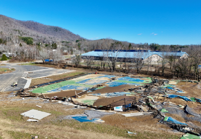 Insight partnered with Asheville Christian Academy (ACA) to oversee the cleanup of its 55-acre campus in Swannanoa, NC, after the Swannanoa River breached its banks. Floodwaters from Hurricane Helene inundated the first floor of every building on campus, bringing in cars, mobile homes, and vegetative debris.
